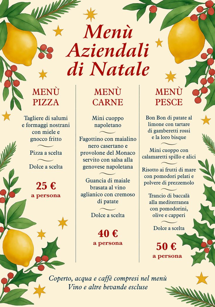 I nostri menu completi offrono una varietà di primi, secondi, piatti a base di pesce e di carne, pizze e dolci deliziosi, tutti preparati con amore e passione.